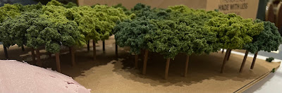 I saw this style of woods or tree on the Altar of Freedom ACW game at Little Wars. The effect is impressive. More realistic in appearance than my standard felt or MDF with single trees popped down randomly.