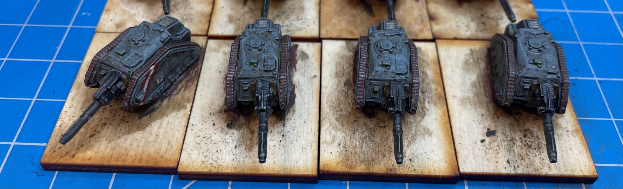 A bunch or of armor was traveling with me while I flew around the country for no reason other than to fly. I got a butt load of points. Ending up 4 or 600 short of the next reward tier. As I flew some nights I got a few hours to block in colors. This group was about half done. I have enough to field a Vraks army with whatever. The priority here was to finish the unfinished and make room for the Sallie and FW table 1st quarter projects.